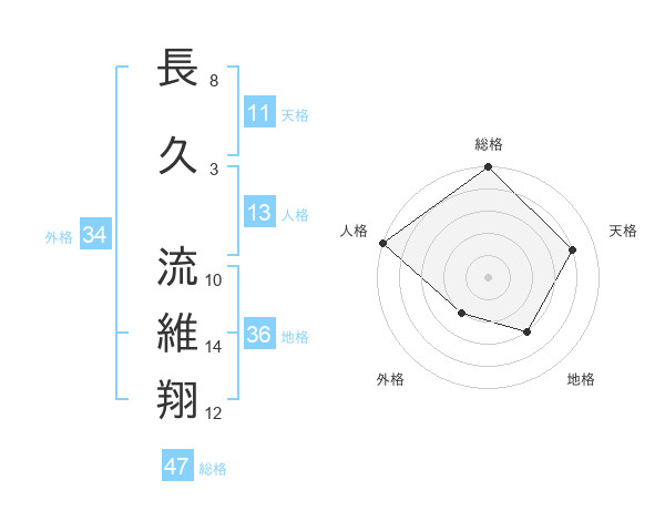 長久 流維翔さんを姓名の画数から五運を鑑定