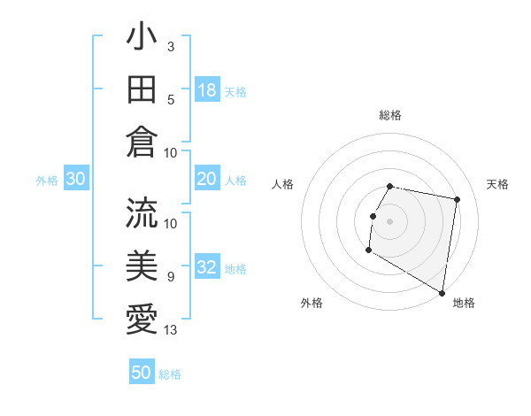 小田倉 流美愛さんを姓名の画数から五運を鑑定