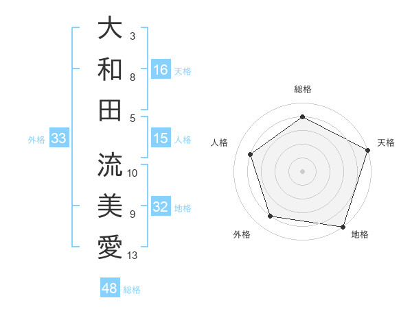 大和田 流美愛さんを姓名の画数から五運を鑑定