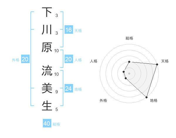 下川原 流美生さんの地格は24画の5点!
