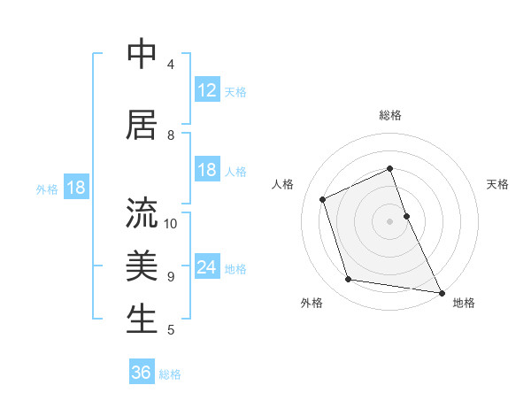 中居 流美生さんの外格は18画の4点!