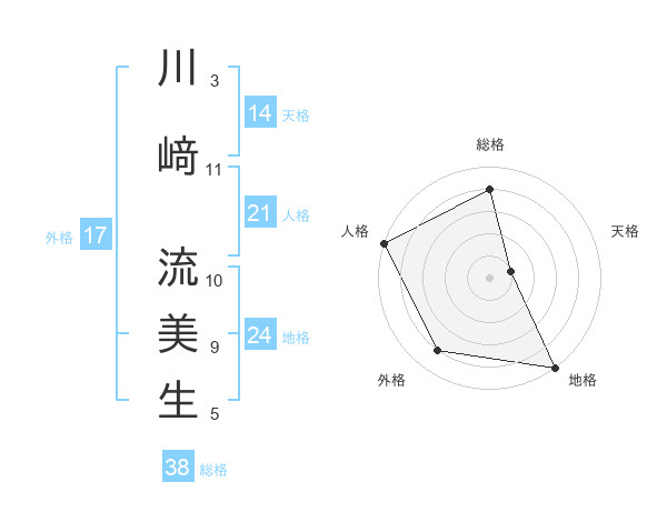 川﨑 流美生さんの総格は38画の4点!