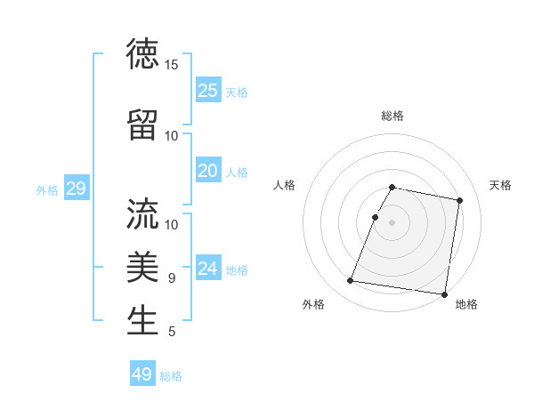徳留 流美生さんを姓名の画数から五運を鑑定