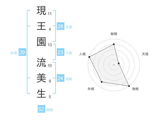現王園 流美生さんを姓名の画数から五運を鑑定