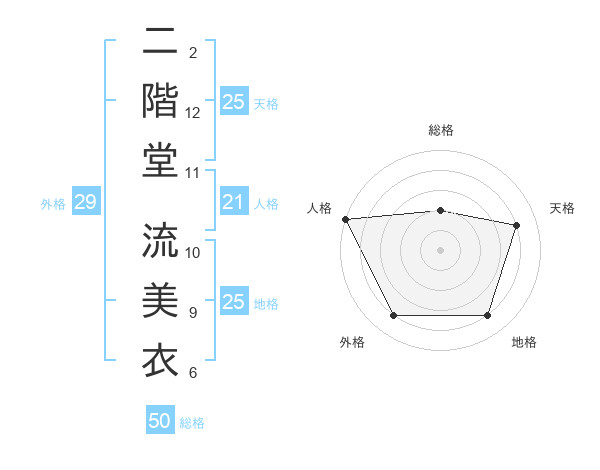 二階堂 流美衣さんの天格は25画の4点!