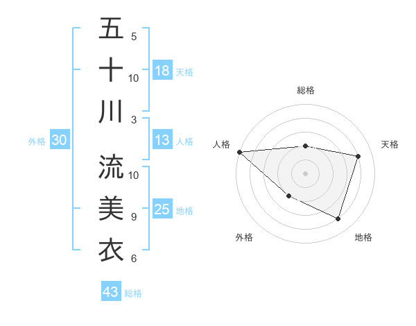五十川 流美衣さんを姓名の画数から五運を鑑定