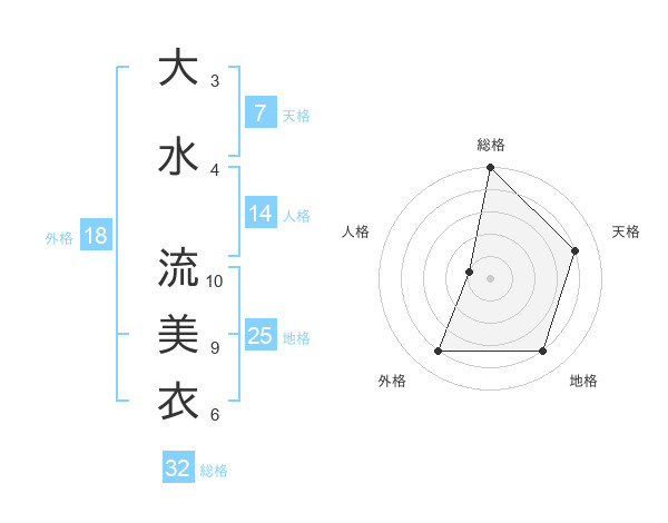 大水 流美衣さんを姓名の画数から五運を鑑定