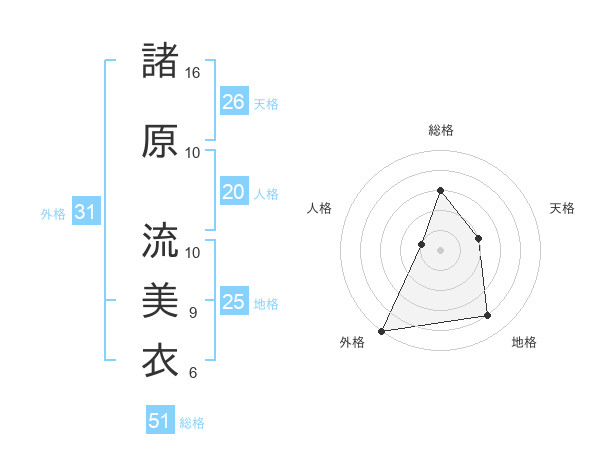 諸原 流美衣さんを姓名の画数から五運を鑑定