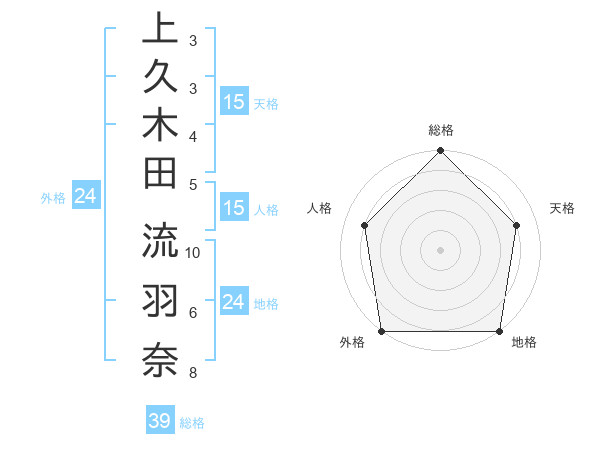 上久木田 流羽奈さんを姓名の画数から五運を鑑定