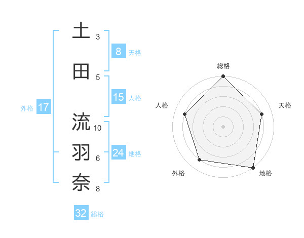 土田 流羽奈さんを姓名の画数から五運を鑑定