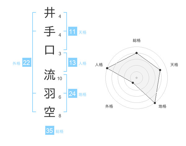井手口 流羽空さんを姓名の画数から五運を鑑定