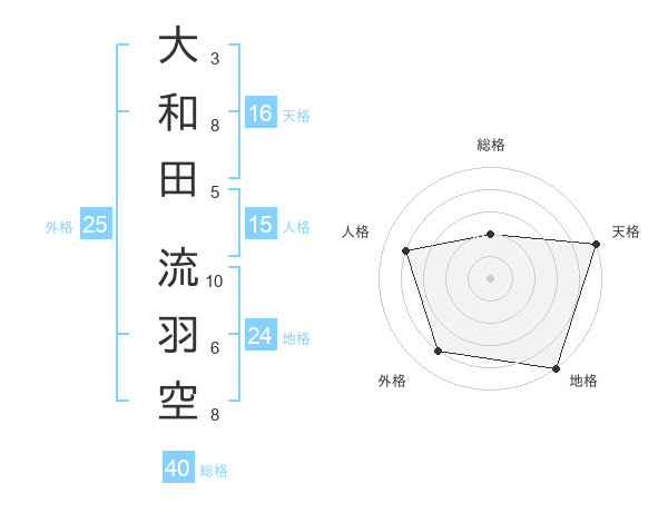 大和田 流羽空さんを姓名の画数から五運を鑑定