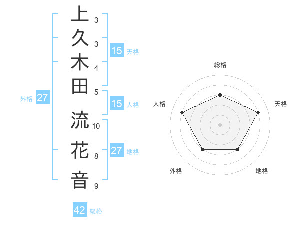 上久木田 流花音さんの天格は15画の4点