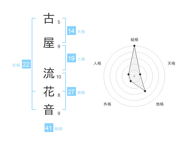 古屋 流花音さんの総格は41画の5点!