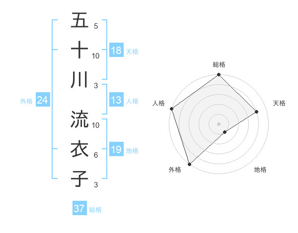 五十川 流衣子さんを姓名の画数から五運を鑑定