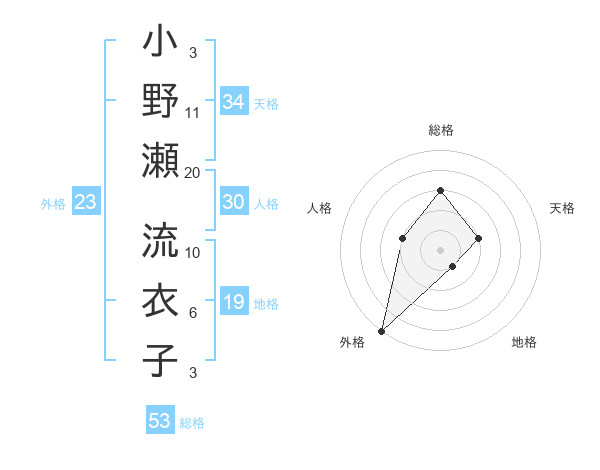 小野瀬 流衣子さんを姓名の画数から五運を鑑定