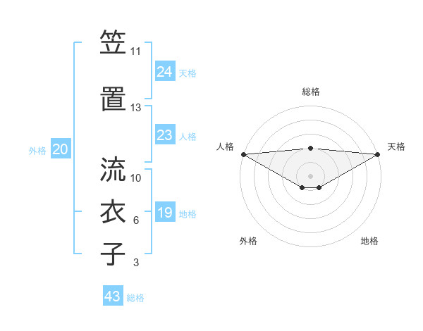 笠置 流衣子さんの総格は43画の2点!