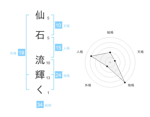 仙石 流輝くさんを姓名の画数から五運を鑑定