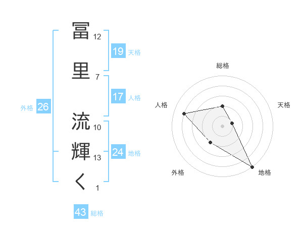 冨里 流輝くさんを姓名の画数から五運を鑑定