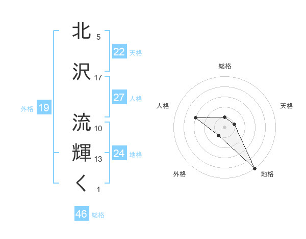 北沢 流輝くさんを姓名の画数から五運を鑑定