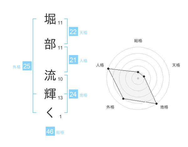 堀部 流輝くさんの地格は24画の5点!