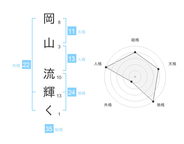 岡山 流輝くさんの人格は13画の5点!