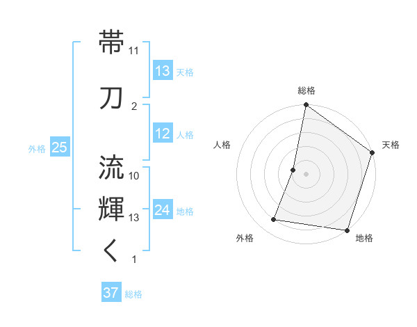 帯刀 流輝くさんを姓名の画数から五運を鑑定