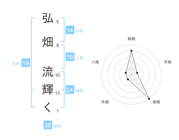 弘畑 流輝くさんを姓名の画数から五運を鑑定