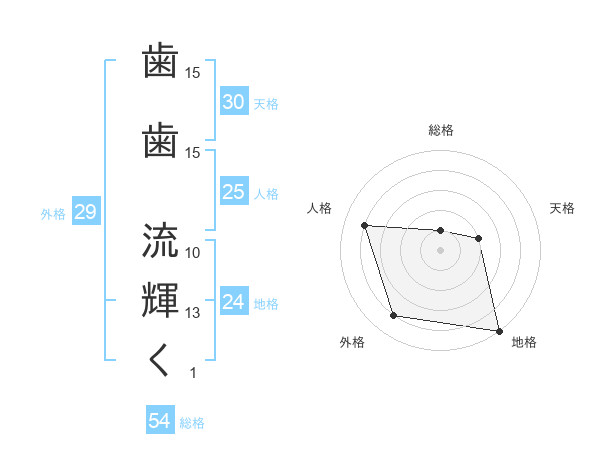 歯歯 流輝くさんの外格は29画の4点!