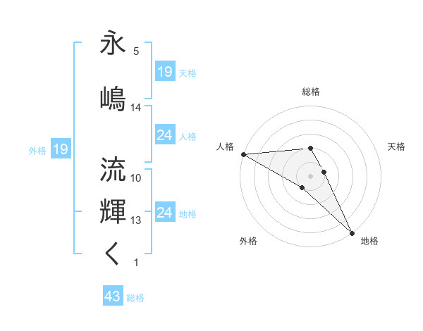 永嶋 流輝くさんを姓名の画数から五運を鑑定