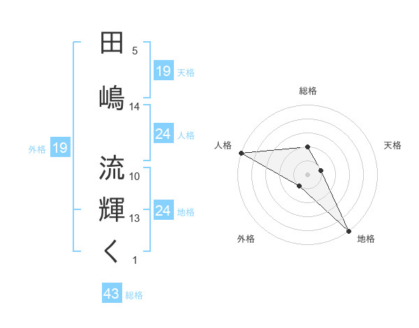 田嶋 流輝くさんを姓名の画数から五運を鑑定