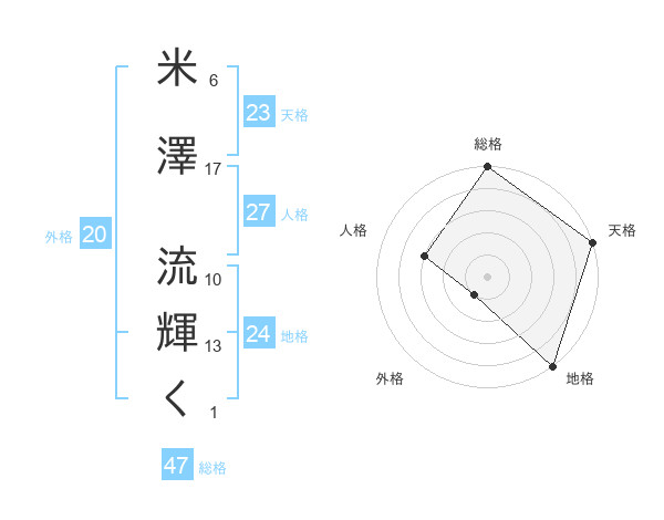 米澤 流輝くさんを姓名の画数から五運を鑑定
