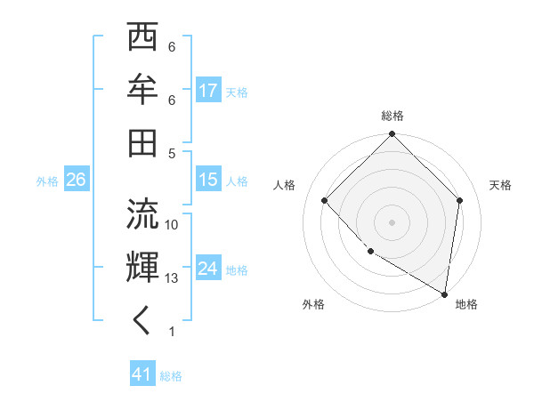 西牟田 流輝くさんを姓名の画数から五運を鑑定