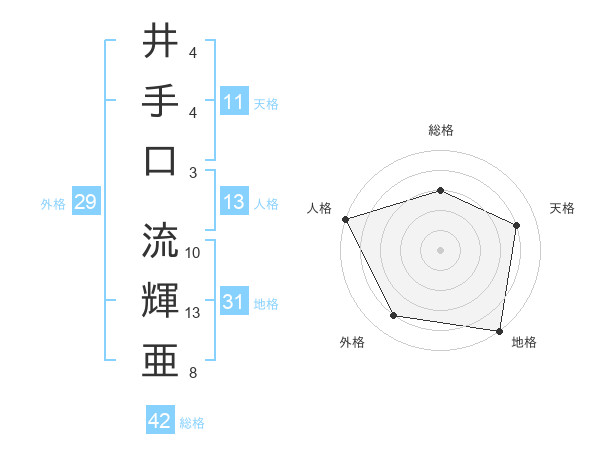 井手口 流輝亜さんを姓名の画数から五運を鑑定