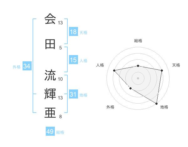 会田 流輝亜さんを姓名の画数から五運を鑑定