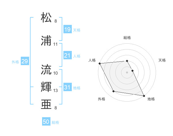 松浦 流輝亜さんを姓名の画数から五運を鑑定