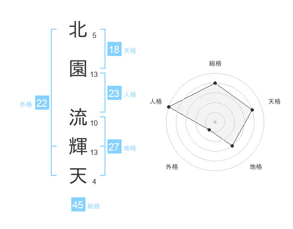 北園 流輝天さんを姓名の画数から五運を鑑定