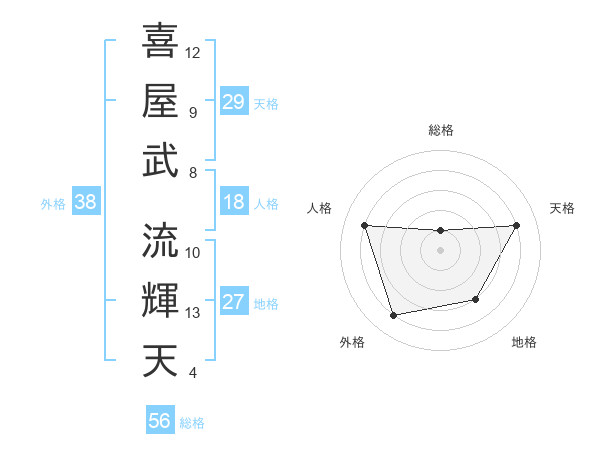 喜屋武 流輝天さんを姓名の画数から五運を鑑定