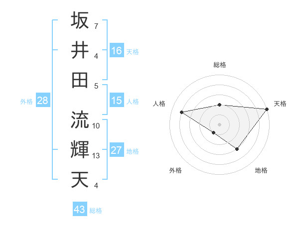 坂井田 流輝天さんを姓名の画数から五運を鑑定