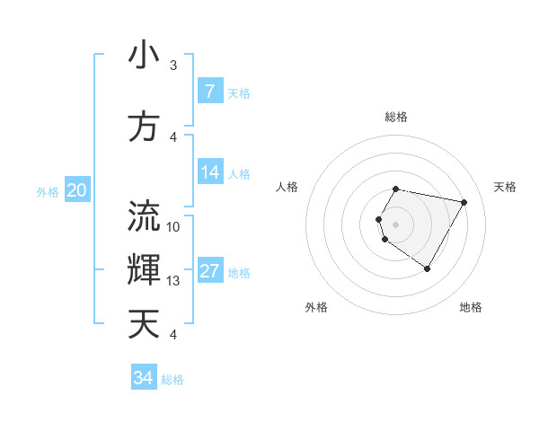 小方 流輝天さんの総格は34画の2点
