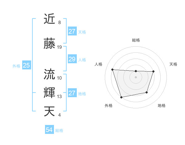近藤 流輝天さんを姓名の画数から五運を鑑定