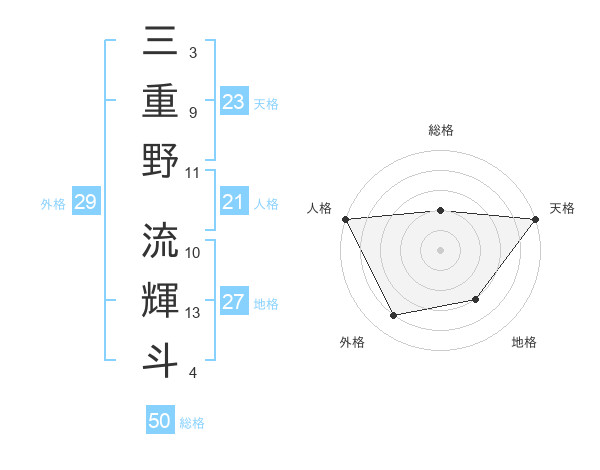 三重野 流輝斗さんを姓名の画数から五運を鑑定