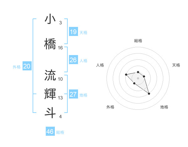 小橋 流輝斗さんを姓名の画数から五運を鑑定
