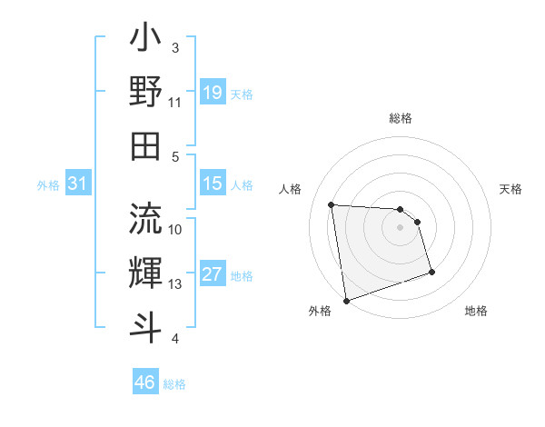 小野田 流輝斗さんを姓名の画数から五運を鑑定