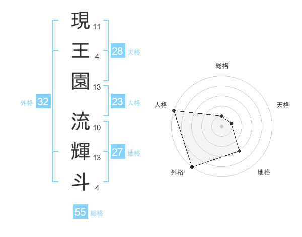 現王園 流輝斗さんを姓名の画数から五運を鑑定