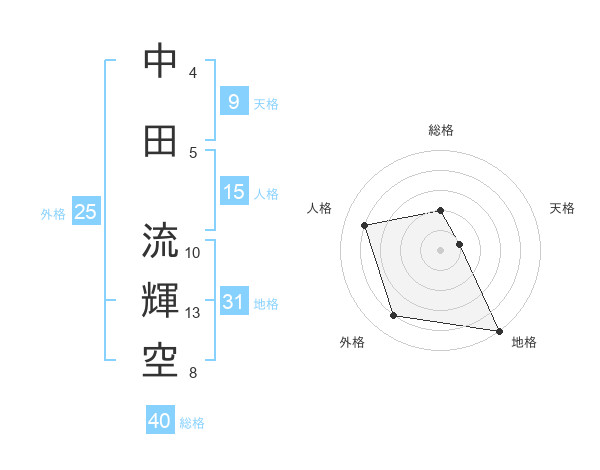 中田 流輝空さんを姓名の画数から五運を鑑定
