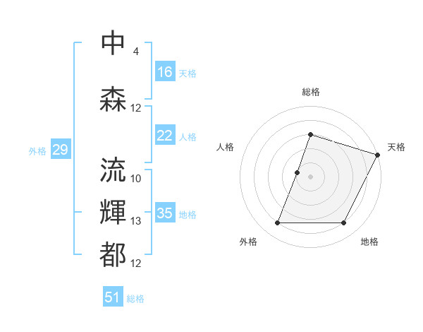 中森 流輝都さんを姓名の画数から五運を鑑定