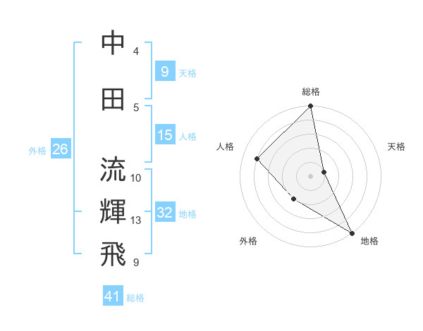中田 流輝飛さんを姓名の画数から五運を鑑定