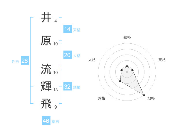 井原 流輝飛さんを姓名の画数から五運を鑑定