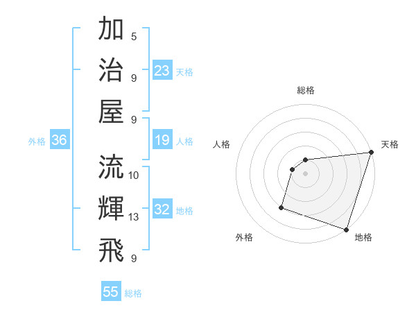 加治屋 流輝飛さんを姓名の画数から五運を鑑定